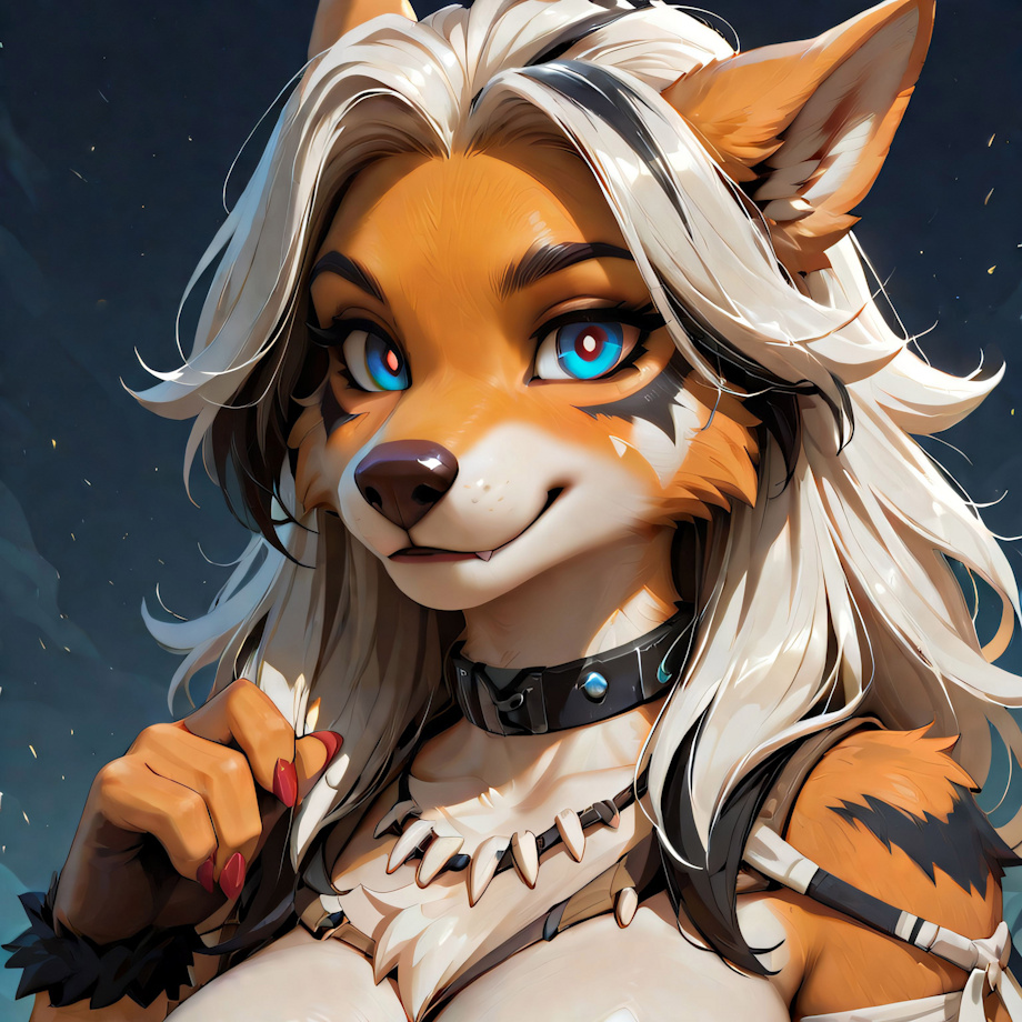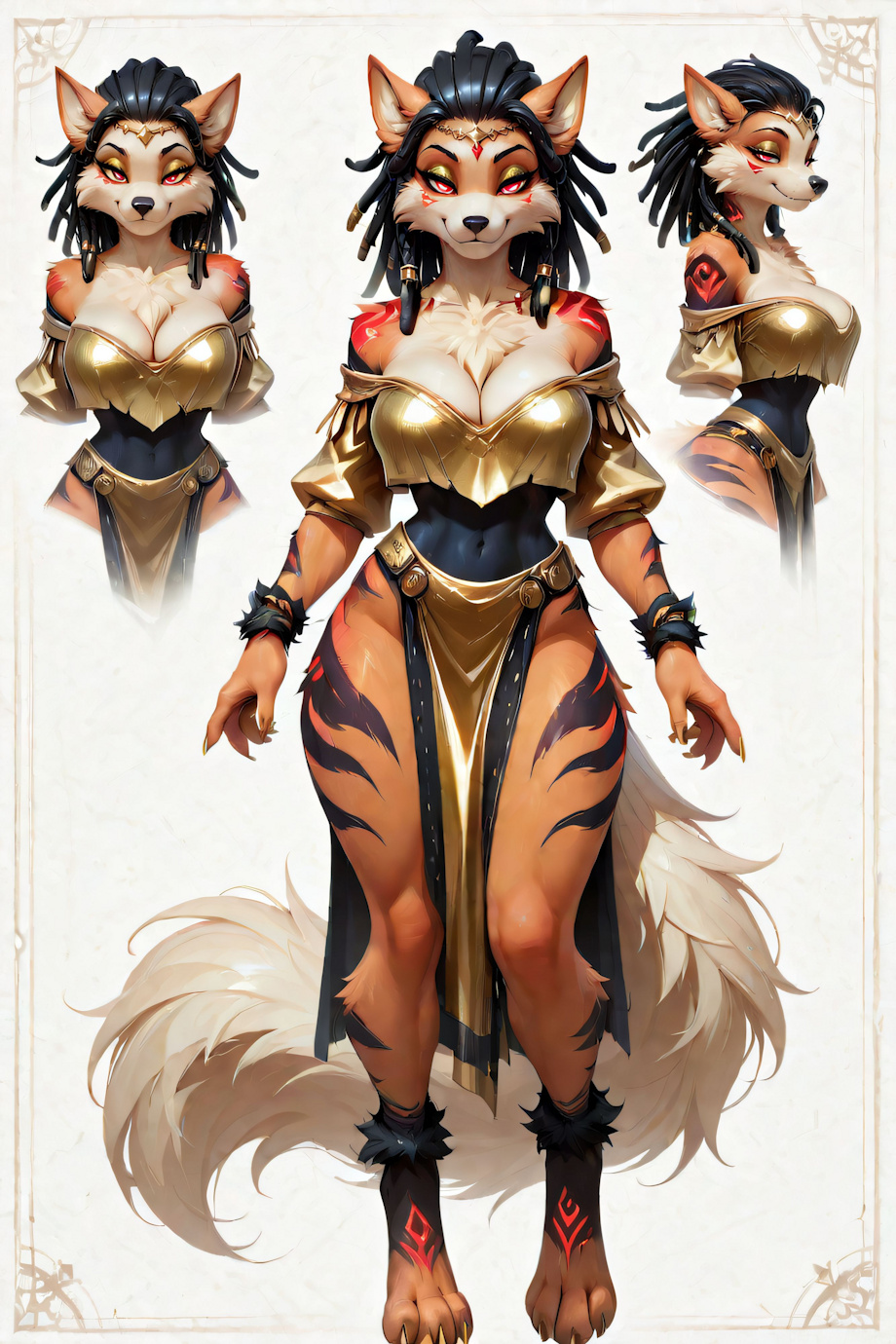 Natural (Orange Fur, Pointed Ears, Black Nose, Clawed Fingers, Gold Colored Nails, Toe Claws, Digitigrade Legs, Bushy Tail, Thick Thighs, and Large Chest)