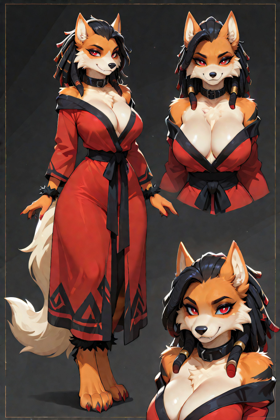 Natural (Orange Fur, Pointed Ears, Black Nose, Clawed Fingers, Gold Colored Nails, Toe Claws, Digitigrade Legs, Bushy Tail, Thick Thighs, and Large Chest)