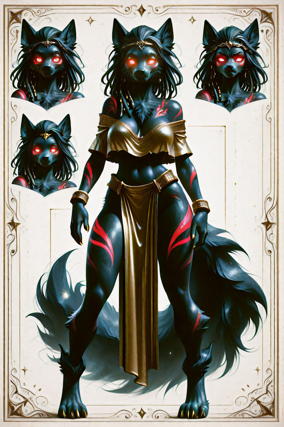 Whispered Form (Black Fur, Pointed Ears, Black Nose, Clawed Fingers, Gold Colored Nails, Toe Claws, Digitigrade Legs, Bushy Tail, Thick Thighs, and Large Chest)