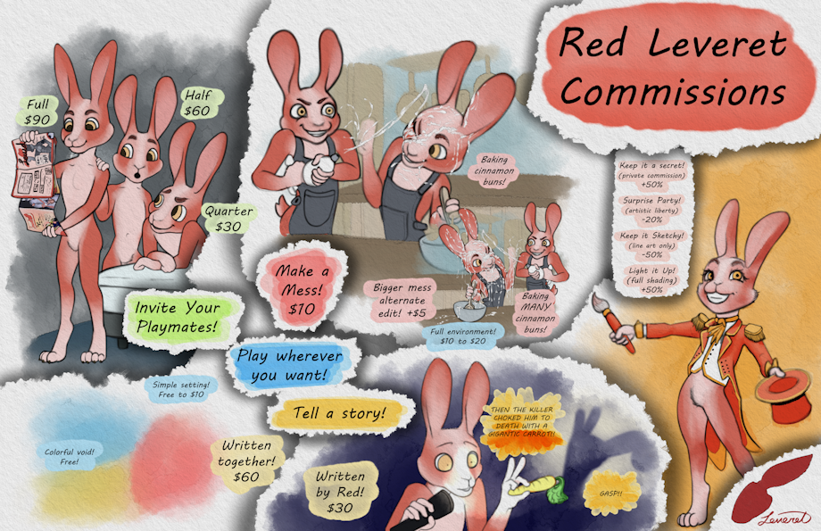 Hi everyone! After many months of procrastination, here is my commission pricing and options! Technically SFW, can you imagine? I had a LOT of fun making this.