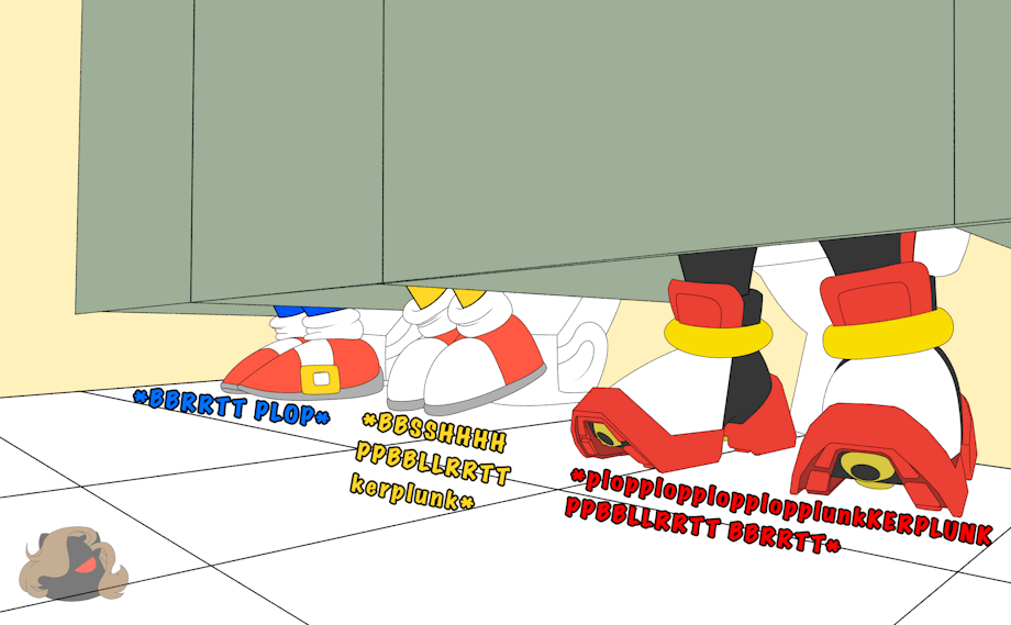 Sonic, tails, and shadow find themselves pooping together in a public restroom! They had many chilidogs with each of them having varying effects: sonics bowels were pretty normal, tails had a lot farts with some poop, and shadow had a lot of runny poop with some farts! :3c