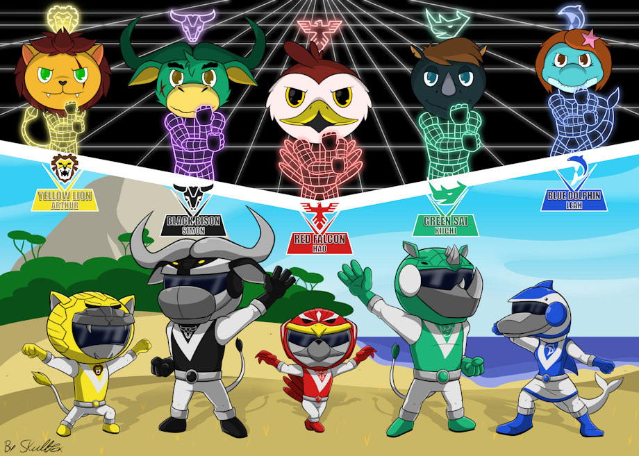 Hao el halcón: líder del equipo; valiente y determinado, con la Falcon Sword se transforma en Red Falcon. Arthur el león: deportista; siempre dispuesto a ayudar, con los Lion Punch se transforma en Yellow Lion. Leah la Delfín: nadadora experta; compasiva y amante de la paz, con su Dolphin Arrow se transforma en Blue Dolphin.