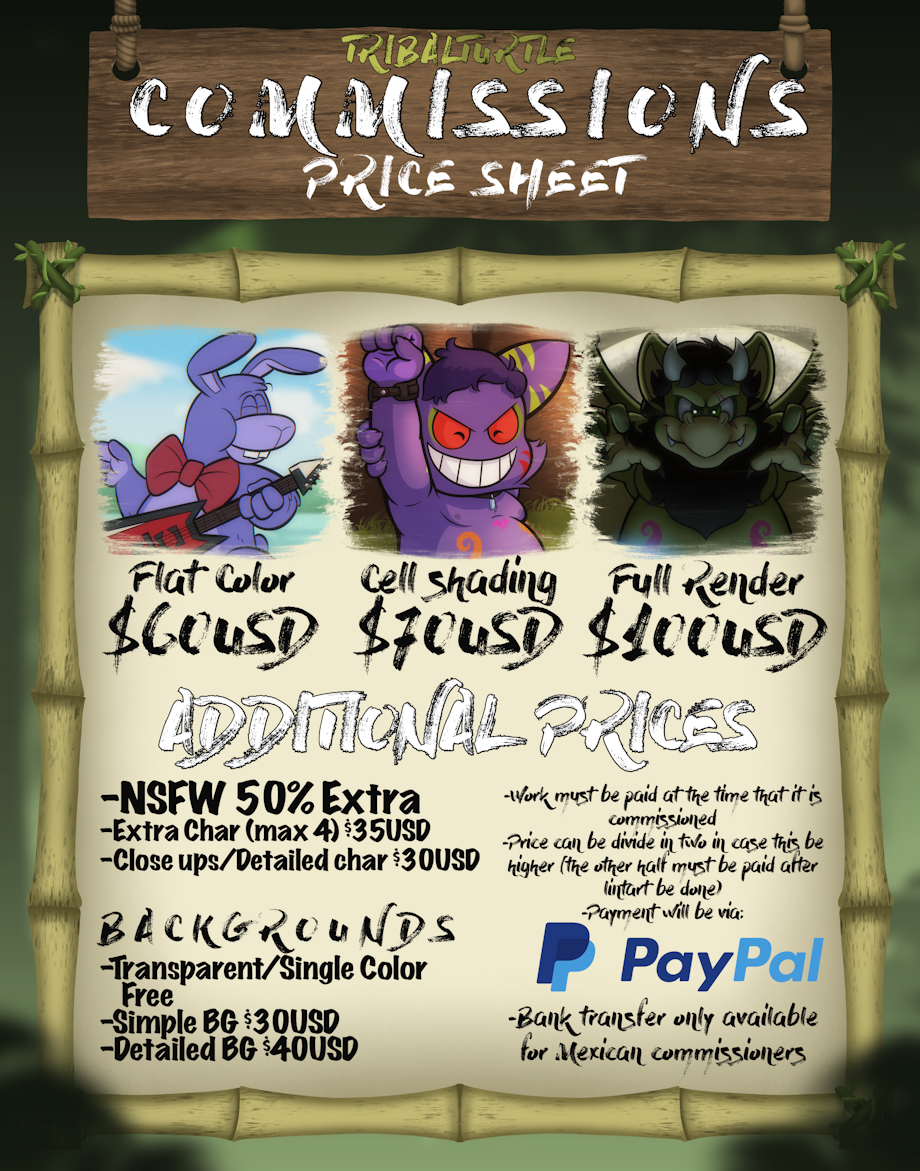 TribalTurtle’s 2026 COMMISSION PRICE SHEET