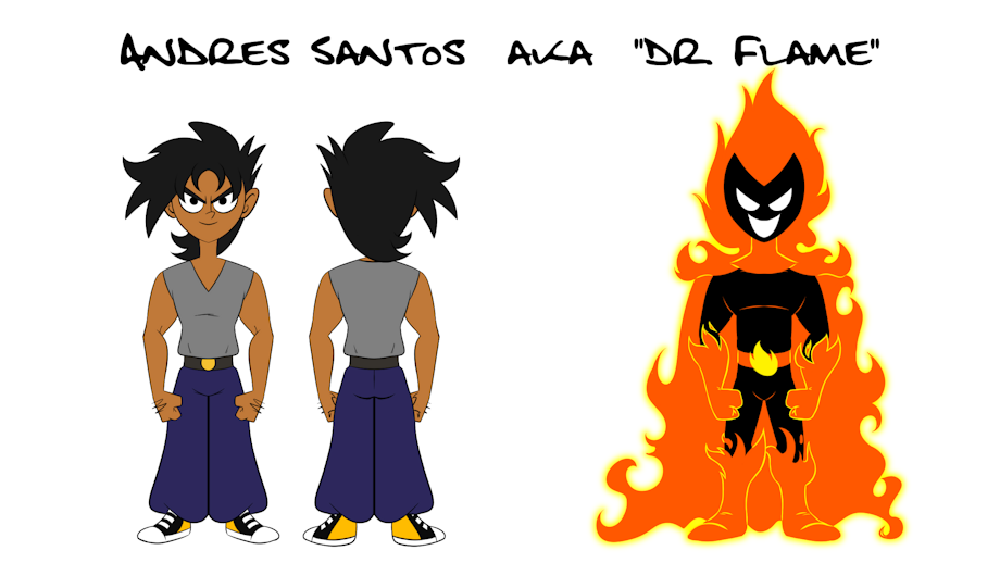 Nickname: The Fire Master, Andrew Height: 6’1 [Normal] 6’3 [Dr. Flame] Weight: 222 lbs Hair: Black Eyes: Hazel [Normal] Light Orange [Demonic Form] Nationality/Ethnicity: Puerto-Rican Sex: Male Age: 21 Rank:B-Class: [Dr. Flame]A-Class:[Careta Controlled] S Minus-Class:[White Flame Form]