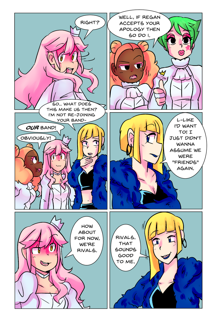 Rattle Toy was a short made passion project to prove i could do it, The comic was written and made in less then a year at a time that was one of the hardest in my life, a family member had passed and that had indirectly caused me to be temporarily homeless i should have put the project aside but i latched onto it and while i have MANY misgivings with how it turned out. I am overall still proud of it despite those flaws. The comic “bombed” essentially and while the goal for this project was never for it to be popular or successful, i was a tad discouraged to the point of barely wanting to post it (its why the long hiatuses in its posting despite the whole thing being finished in 2018) I decided it’s finally time. Thank you for anyone who reads this silly little niche passion project full of weird choices and silly writting. These girls were my children and i learned a lot from bringing them into the world.
