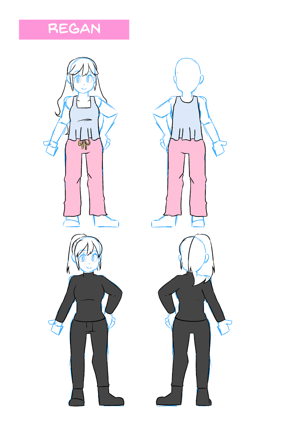 A bunch of Concept art from production back in 2017/2018 when the comic was made, i drew outfit turn arounds for EVERY outfit featured in the comic for the leads.