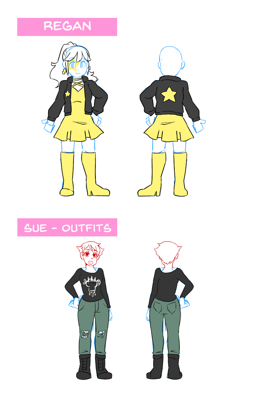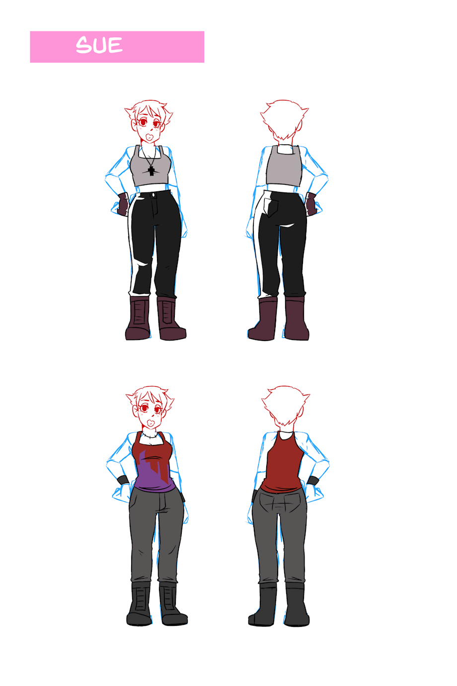 A bunch of Concept art from production back in 2017/2018 when the comic was made, i drew outfit turn arounds for EVERY outfit featured in the comic for the leads.
