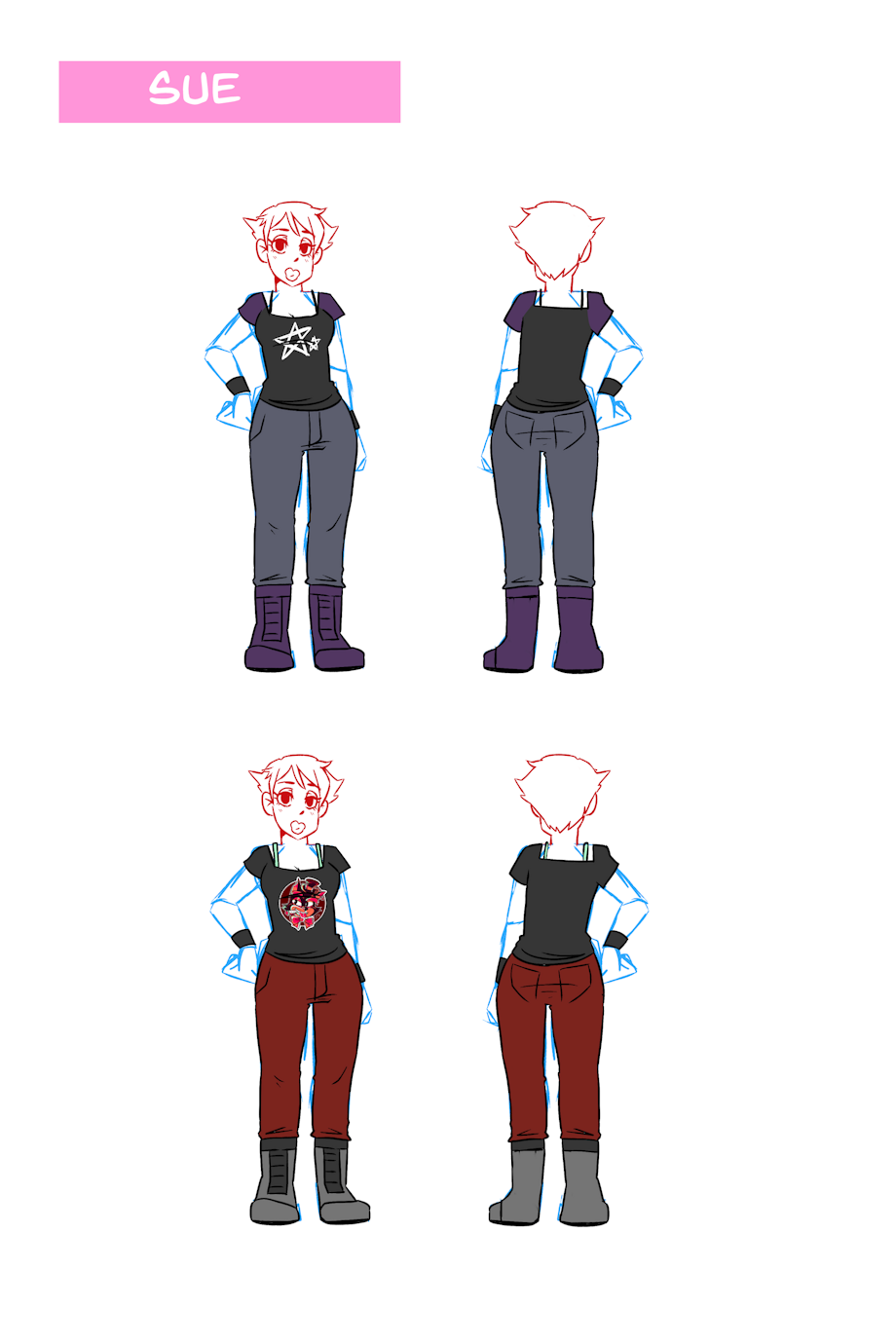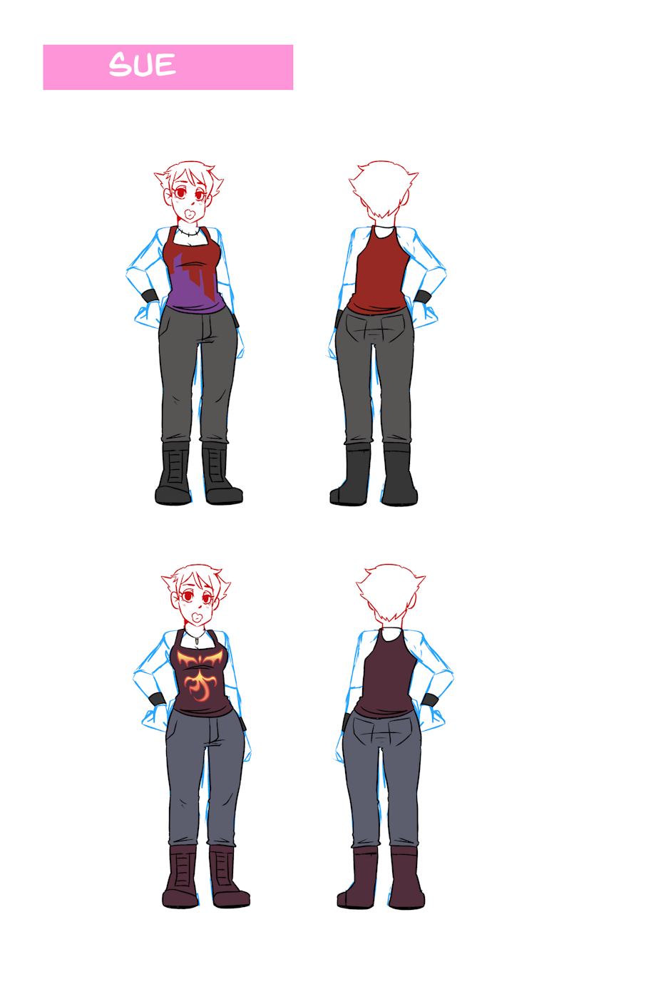 A bunch of Concept art from production back in 2017/2018 when the comic was made, i drew outfit turn arounds for EVERY outfit featured in the comic for the leads.