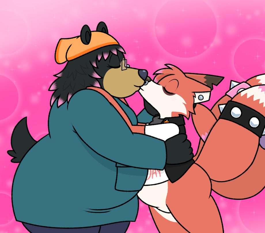 I've got more Valentine's Day art to post! :3 Here's one for Zanny and Foxune, double-kissing, lips and bellies!