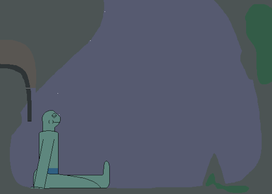 Outside of his home, there's very few places this lizard can relax; he's so intensely shy, that even the CHANCE of people seeing him makes him uncomfortable. This, however, is one of the places he likes. Below the normal bottom of a certain lake, there's a cave with nothing in it, not even fish. The perfect place for him. He's spent a lot of time there, enjoying the relief of knowing that nobody will happen across him, and he's personalized the place a little as well. The very bottom of the cave connects to a different cave system that leads to the surface, and while there's no possible way he could fit through, a hose could, and he set one up so he can breathe through it and stay much longer than normal. Sometimes he even finds himself sticking around for over an hour...