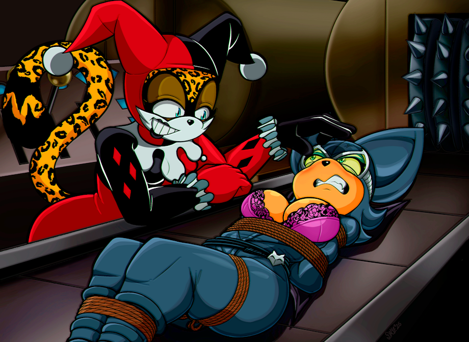 Ever since I saw a glimpse of Rouge's official design as catwoman, I simply couldn't pass up the opportunity to pay homage to this iconic scene. Safe to say Rouge earns firsthand the dangers of adapting such a moniker! And, hey, Zarah's always happy to help a gal reenact a world-famous DID scene. No cats... bats...? ...were harmed in the making of this. "Pinky promise" as the leopard claims.