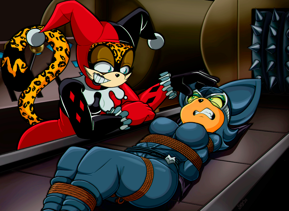 Ever since I saw a glimpse of Rouge's official design as catwoman, I simply couldn't pass up the opportunity to pay homage to this iconic scene. Safe to say Rouge earns firsthand the dangers of adapting such a moniker! And, hey, Zarah's always happy to help a gal reenact a world-famous DID scene. No cats... bats...? ...were harmed in the making of this. "Pinky promise" as the leopard claims.