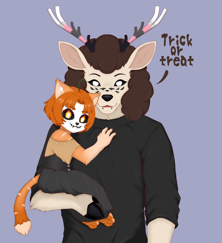 Showcasing one of my dear OC's, Latte, my pumpkin kitty, along with some holloween father daughter time pics I got a bit ago ~