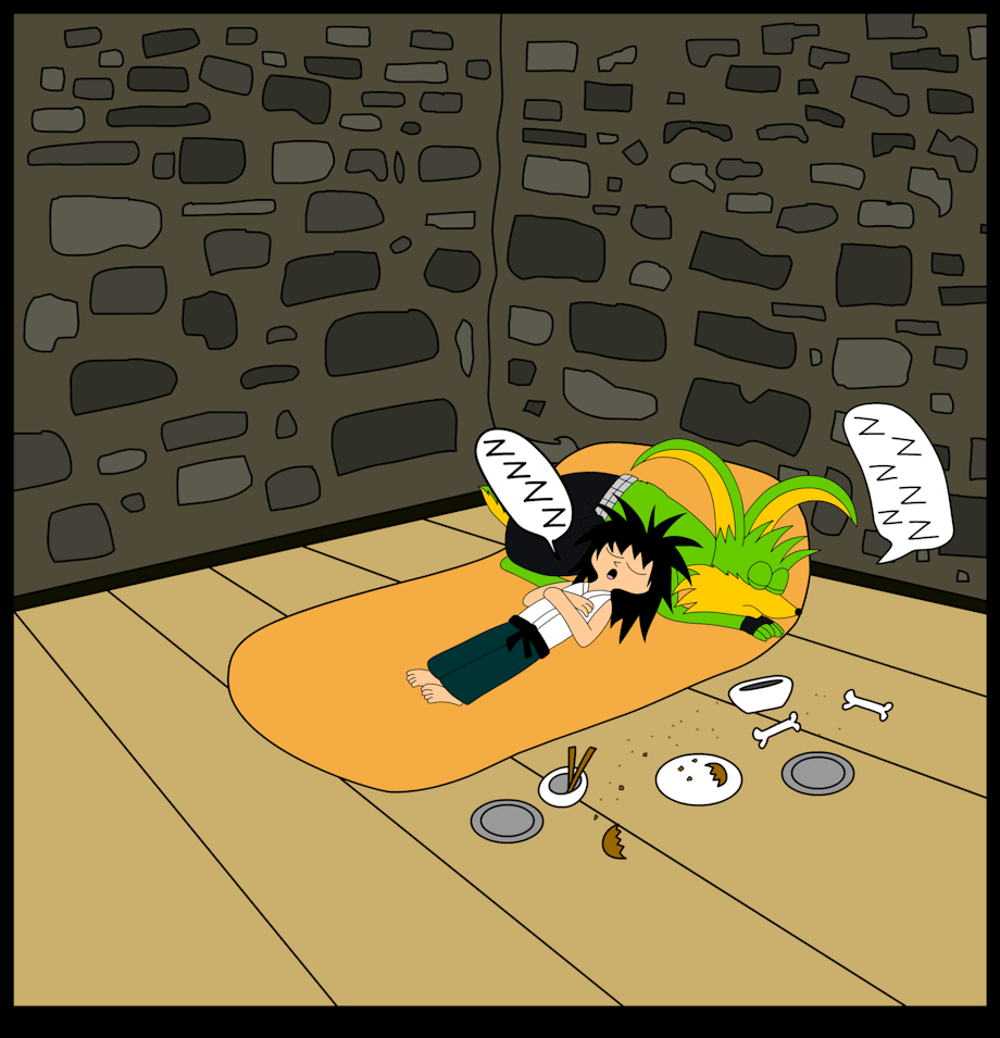 After a good hearty meal, Jodd and Todd decide to take a quick nap before the next battle.