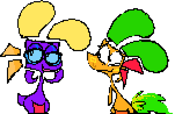 of his Bernabyl the Jumpo and Miko the Poko, shown here in the style of my games!! Bernabyl has actually participated in my big Art Event I did, if you recall that one!!