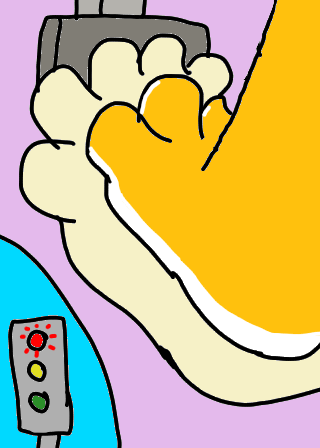 Tails don’t want to wait so he puts his paw down and breaks the gas pedal in the process. The car flies down the road before heading towards another red light where the driver and tails slam on the brakes