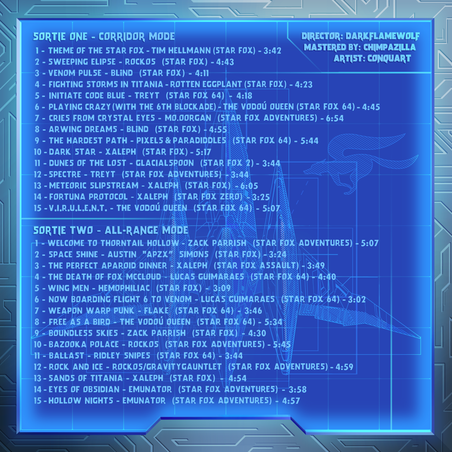 Let's just say this was an unexpected album directing job! I thought I was finished after reviving and finishing the Final Fantasy 8 album. However, a good gathering of ReMixers on that album started pitching the idea (was first a joke, but soon became serious) that I should also revive and finish the Star Fox album that was started but never finished 2+ decades ago in 2003! We've gone this long and the OverClocked ReMix community still hadn't produced a Star Fox album! I had a good working rapport with quite a few ReMixers by this point after 3 albums directed, and many were encouraging me to helm the job. After much consideration (and inner turmoil), I agreed to take the role and bring Fox McCloud home.