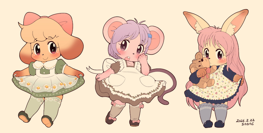 皆めちゃくちゃかわい過ぎる! 古くはメイプルタウン物語のパティちゃんもそうですが ケモロリっことオールドスクールな女の子の衣装は相性抜群ですね!