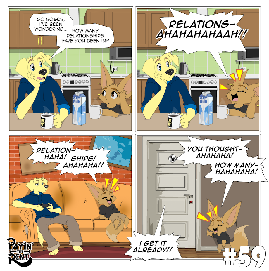 Payin’ the Rent is a slice-of-life comedy comic following the chaotic misadventures of Roger, a foul-mouthed, laid-back fennec fox, and Ben, his nerdy, optimistic Labrador roommate. The two live together in a cramped apartment where every day spirals into ridiculous situations.