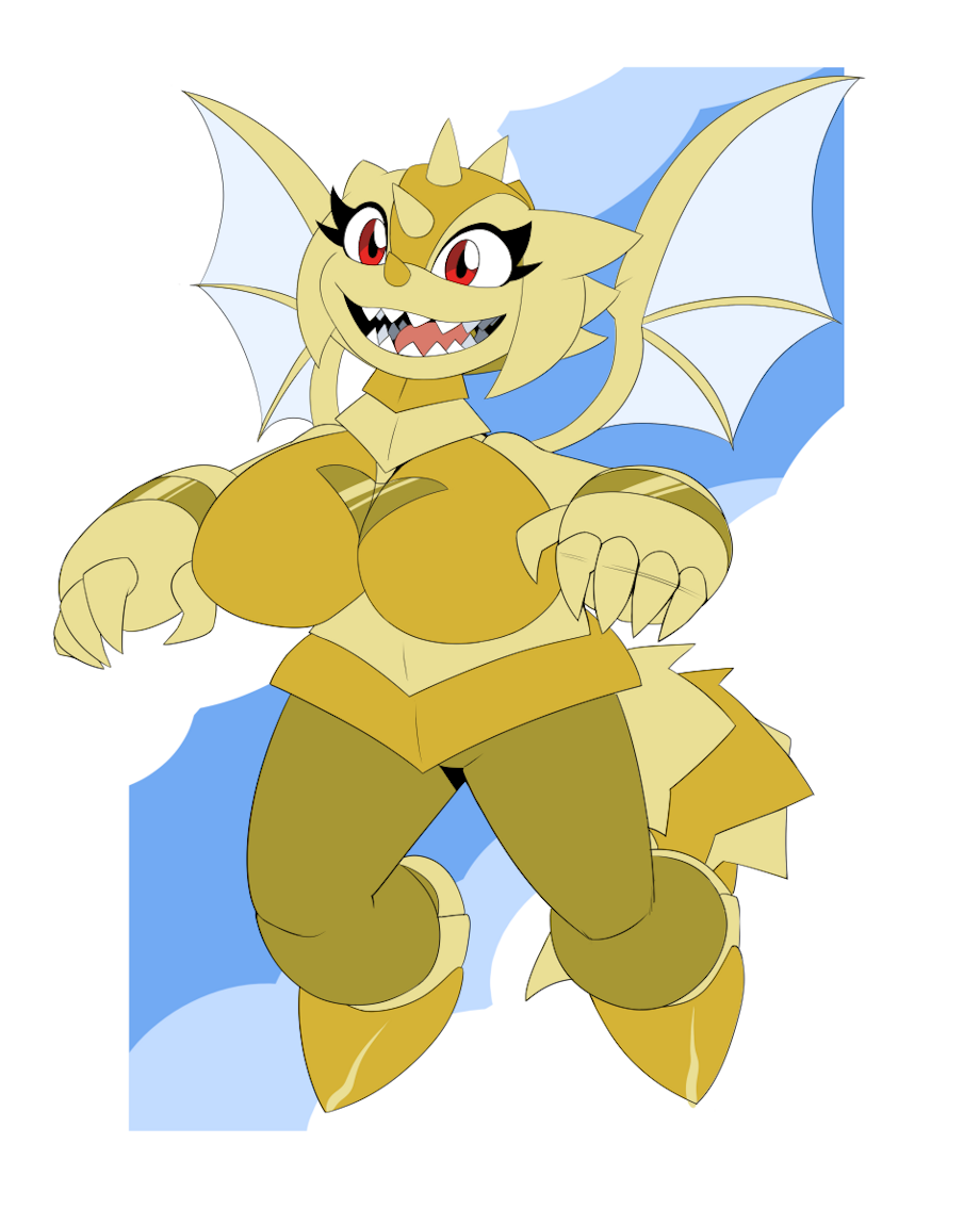 In Sonic Superstars, Trip transforms into a dragon with all seven Chaos Emeralds. Naturally, I'd imagine she'd have red eyes. And overtime, her dragon form would be able to stand on two feet.