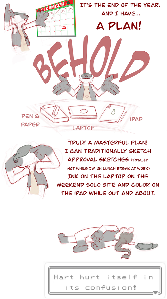 Scooped up a mess of overtime from people taking the holidays off. Back to back doubles with an eight-hour turnaround (I slept in the jeep). Setting up for a loooong quiet shift just to realize the iPad is on my desk at home. ...and my slightly-younger-than-dirt-and-God laptop shits itself on starting up.