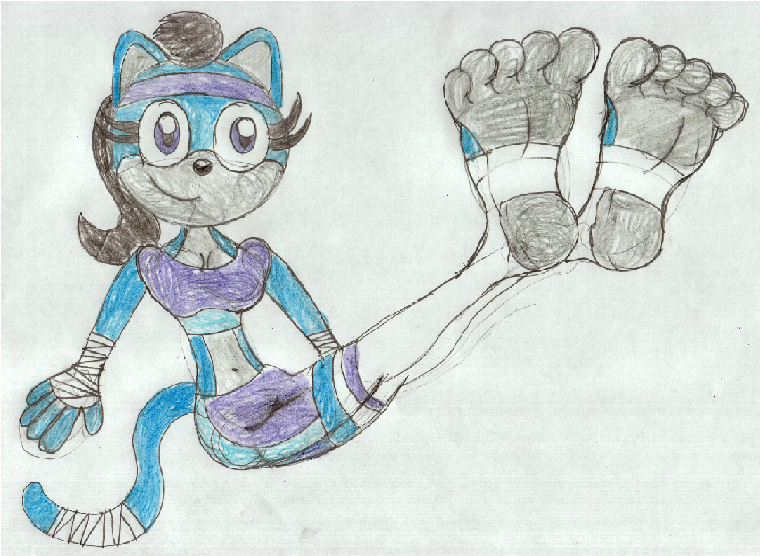 Felt like drawing my Mobian OC gal Nancy the Panther wearing a pair of stirrups. I colored the stripes on the stirrups purple to match the rest of her outfit.