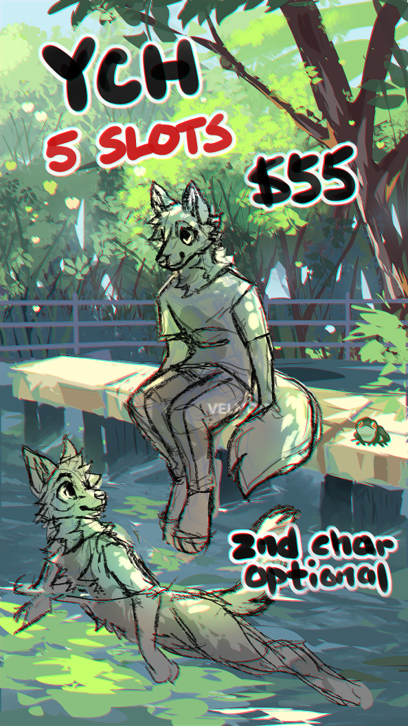 First come first serve. ☣ Addition of simple accessories are free ☣ The buyer receives a full-size image of the painting ☣ Buyer may give the character clothes ☣ Buyer may change the species in the YCH ☣ Buyer may change the gender ☣ Payment is made through Paypal, Kofi, or Stripe. -----