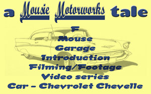 "Alright, we live? We-e-e're live. Hey ho all you wonderful people out there in Youtube land! Missy here from Mousie Motorworks, bringing you another exciting episode! Those of you paying attention will notice I'm not standing in the garage, and you're correct! I'm standing in the secondary yard, as the subject of the new episode is right here." She gestured at the dull and faded maroon-ish Chevelle with its swathes of surface rust and pale primer, the dull blue hood and black left front fender. "That's it right there. Most of you will immediately recognize it as a Chevrolet Chevelle, and again, you're correct! This was a project car that didn't get finished, so someone bought it, got it running and driving, and used it as it was to play around the B-roads. Until a couple weeks ago, during that rainstorm, when he dodged a deer running out of the forest and ran right over the remnants of the old wildlife crossing sign, doing some pretty bad damage. He got it towed to my yard, asked me if it could be fixed and what it would cost, and decided it was more than the car was worth so he gave it to me. Thanks a lot for loading a bunch of work on my shoulders, mister Stewardson! But this will be a fun little project, which in turn will make for a fun little new series on this channel! So I will take you through exactly what kind of car we have here and what it will need, right here after the intro, here at Mousie Motorworks!"