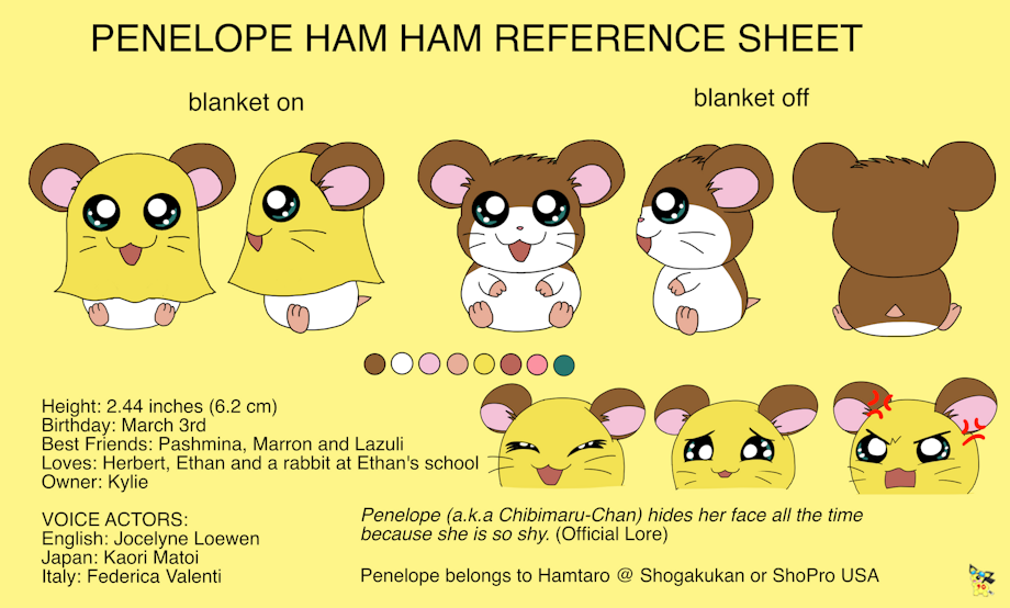 I made a reference sheet of Penelope, my favorite hamham! It was done so I could share her info, how she looks like without her blanket as well and why she wears it Penelope belongs to Hamtaro/Shogakukan/ShoPro USA~