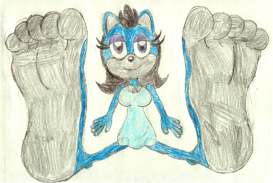 For my birthday this year, I drew my Mobian OC gal Nancy the Panther wearing the sky blue nightgown I made her a while ago as she flaunts her big feet.