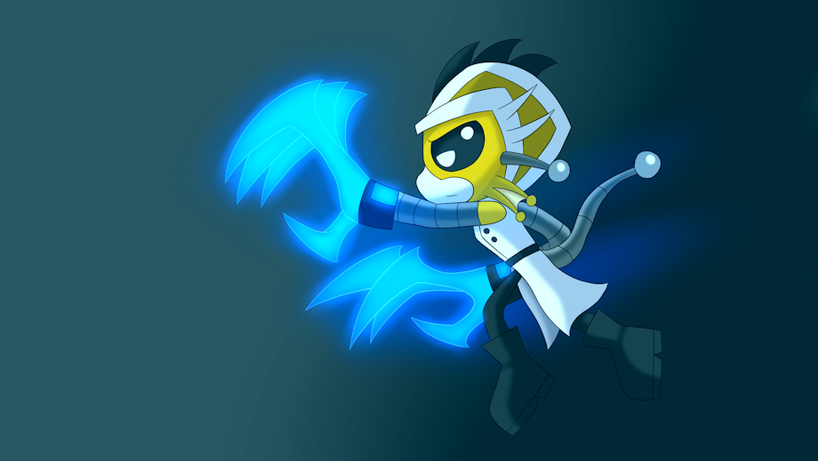 Azura used to live in an underwater city before getting captured and turned into a robot monkey, her hands turn into liquid energy and she controls how sharp or "watery" they are, hence the neon glow.