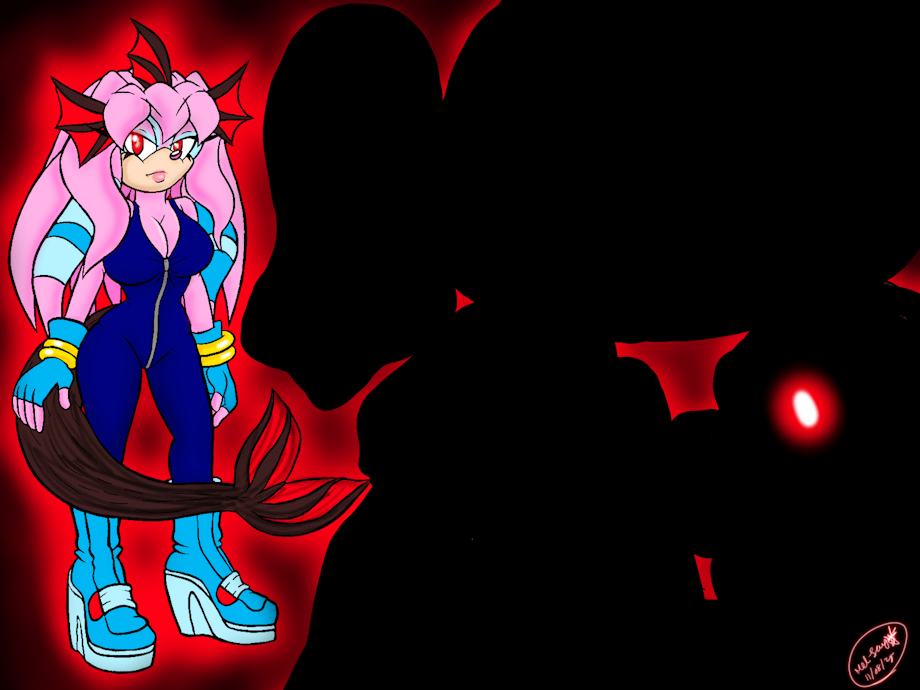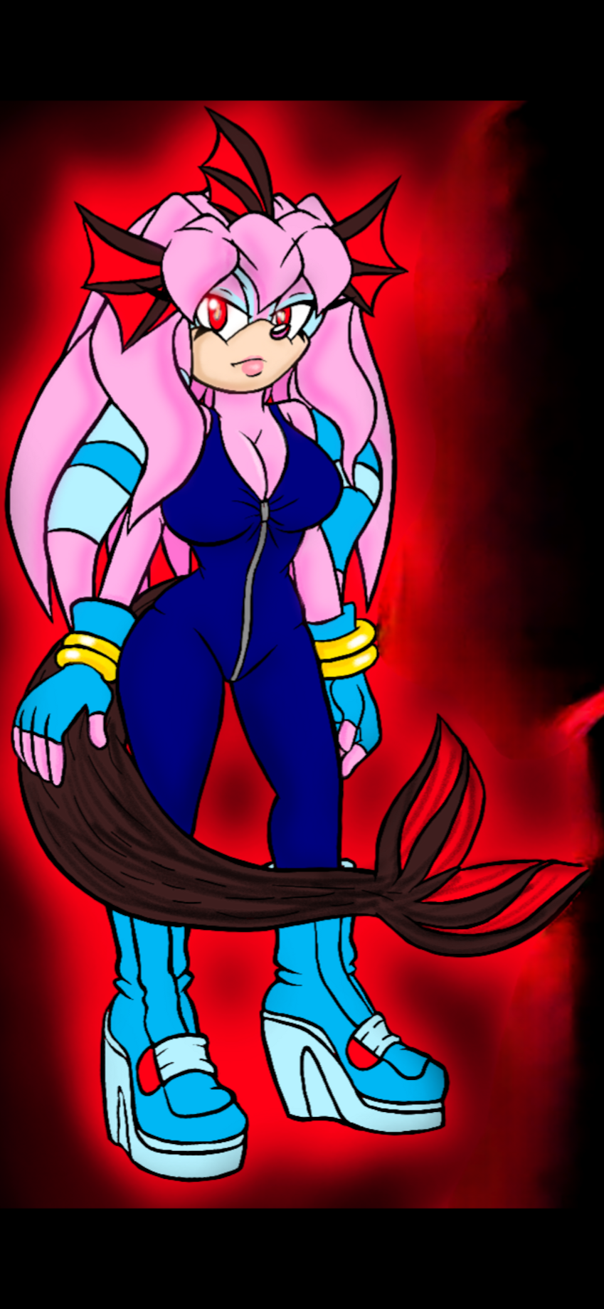 (For anyone wondering "why does she kinda look like a Shiny Vaporeon?", well that's because the Pokémon was inspirational for her fins and Tails.)