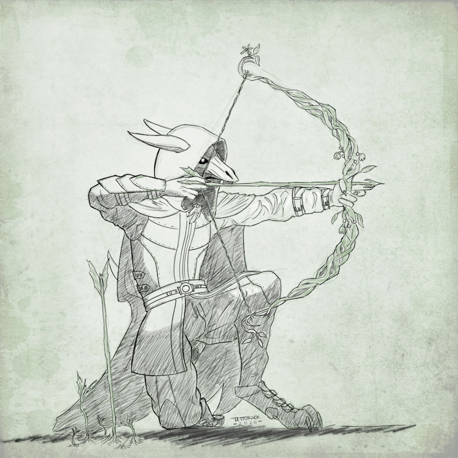 Last month I fell on very dire straights, and opened myself up for emergency sketch commissions. A friend of mine took four of my slots to cover the four seasons of his character Askan. This is a sort of druid/fey warrior who hunts demons and is so deeply connected with nature magic that he physically changes based on what season it is.