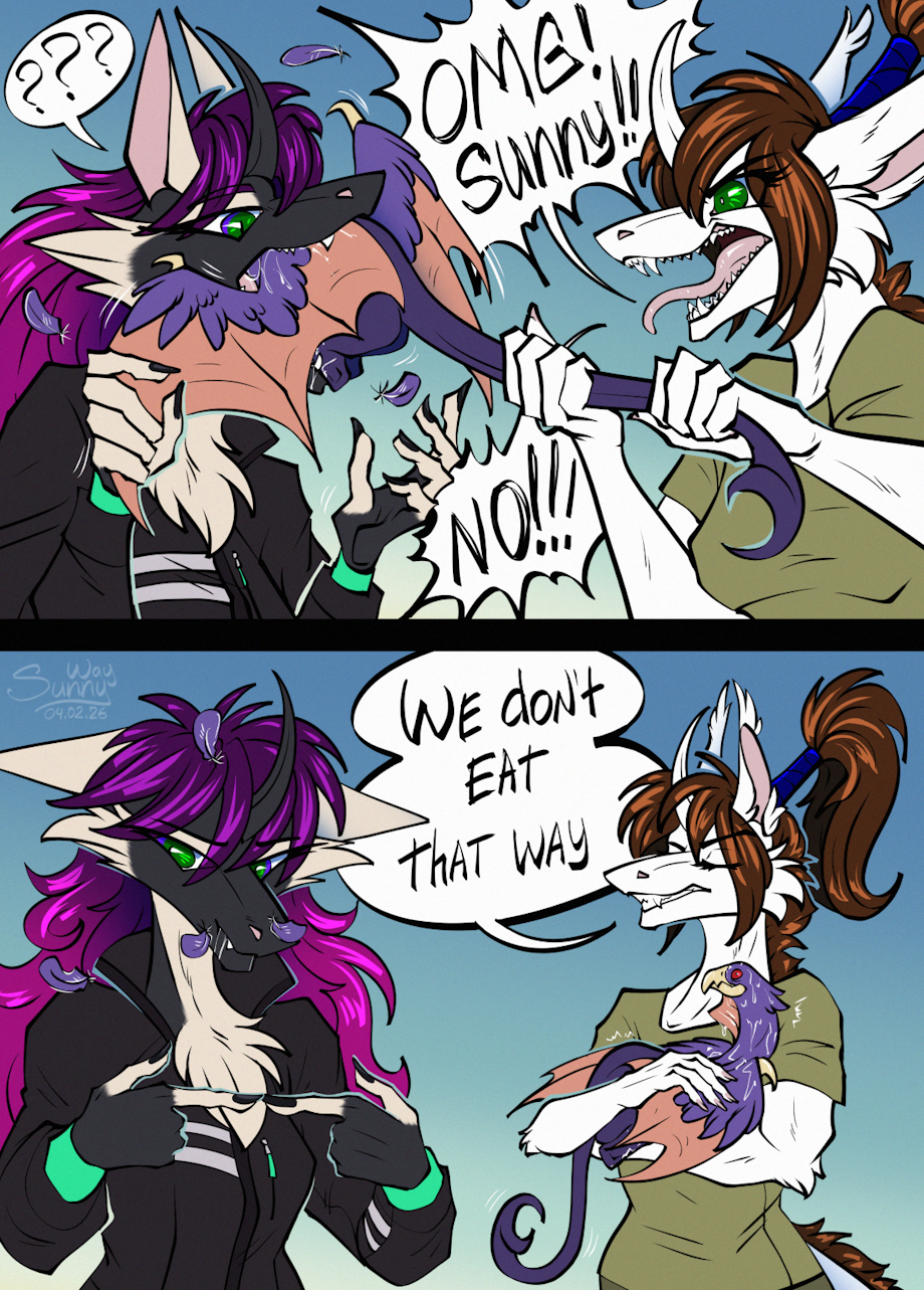 So, it's not that your eating the birb, or eating it alive, nope. You're eating it with it's feather