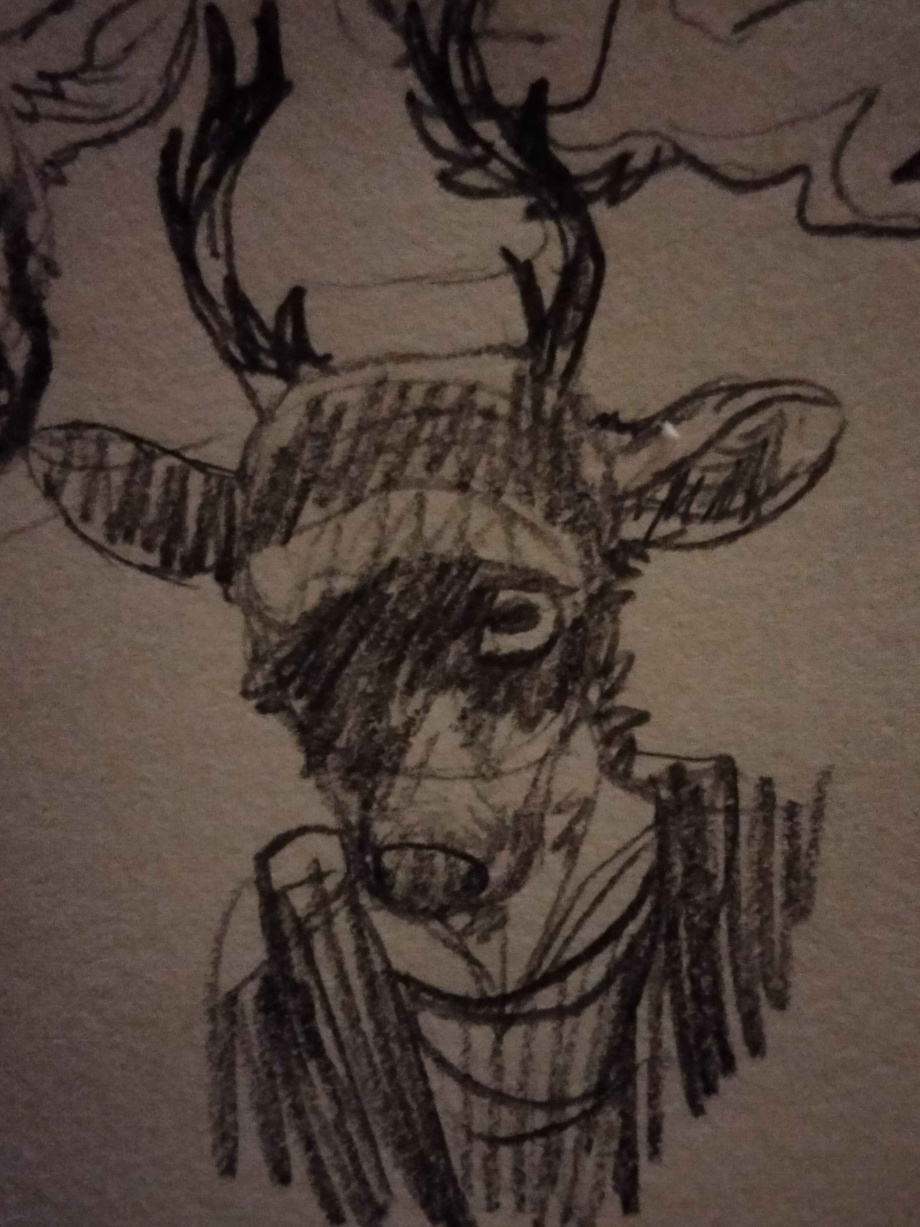 i have a commission for a friend im working on (as soon as i can fully shake off art block). for now have a deer, piebald whitetail and a little bit of a freak, he will record you from a distance without permission
