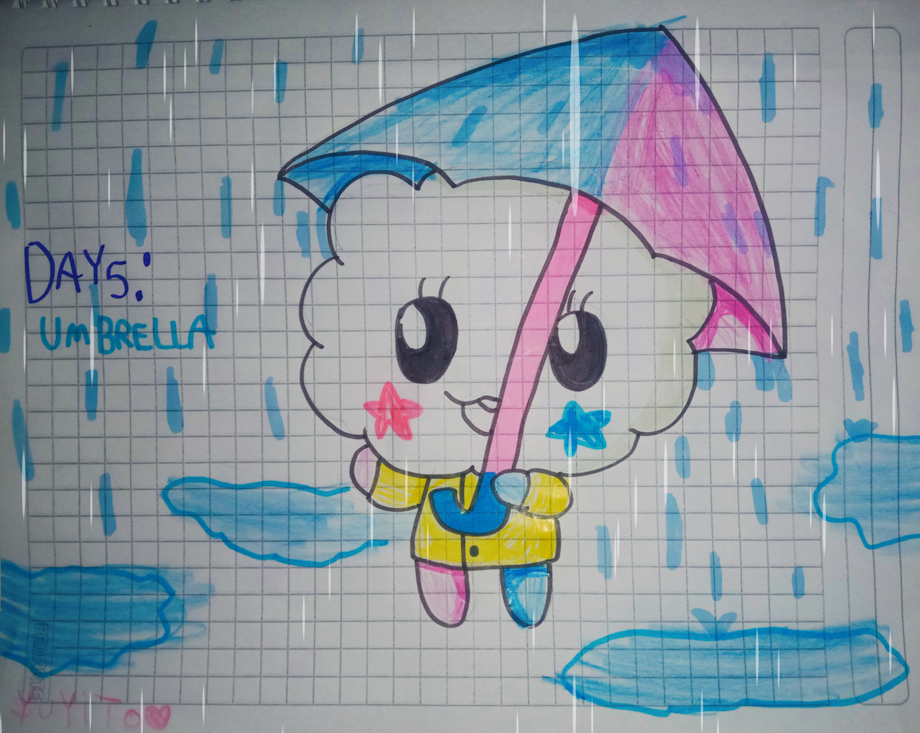 para este día decidí hacer a som quién salió a pasear en un día lluvioso con su impermeable y su paraguas favorito 💙🩷☔.