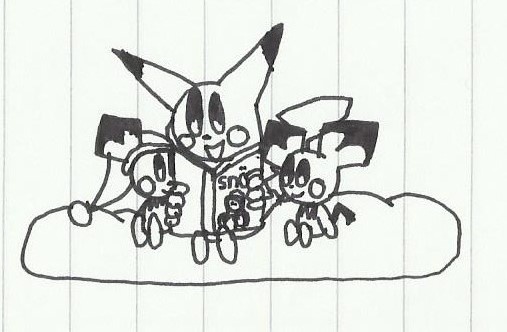 Note: The ghostcharacter named Bokuro belongs to Motoneko. This art with Bokuro interracts with Pikanya is drawn around 2009-2010. I drew that at school.