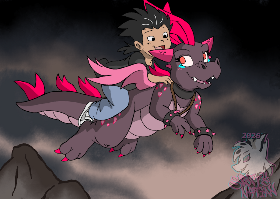 After Moreno have found a unique dragon scale of his own and made a wish to visit his newfound friend, JiJi wasted no time in giving him a warm welcome at her home domain in Dark Dragonland.
