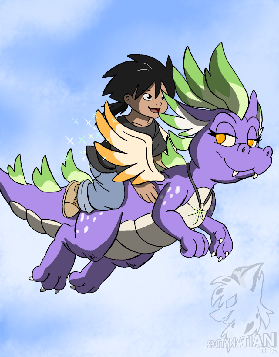 This piece also marks the Introduction of my own Dragontales human OC, Moreno.