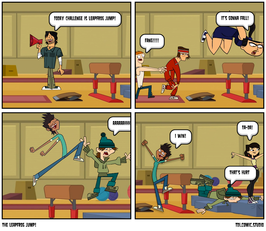 Chris Announced To Do LeapFrog Jump! Everyone Doing Leapfrog Jump Everyone Do LeapFrog Jump Except Ezekiel He Sudden Fall Into Cusion While Scott Is Chased By Fang. While Mike Turns Into Svetlana But Sky Already Did That. Svetlana Becoming Mike And He Won