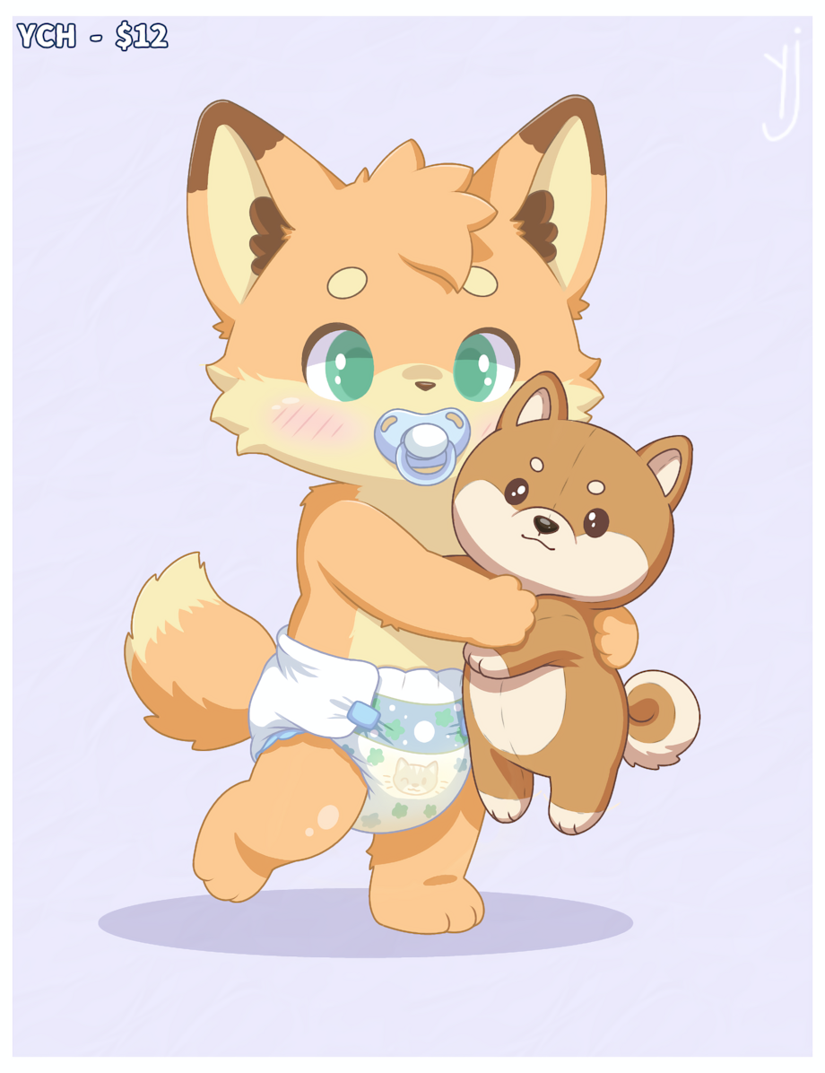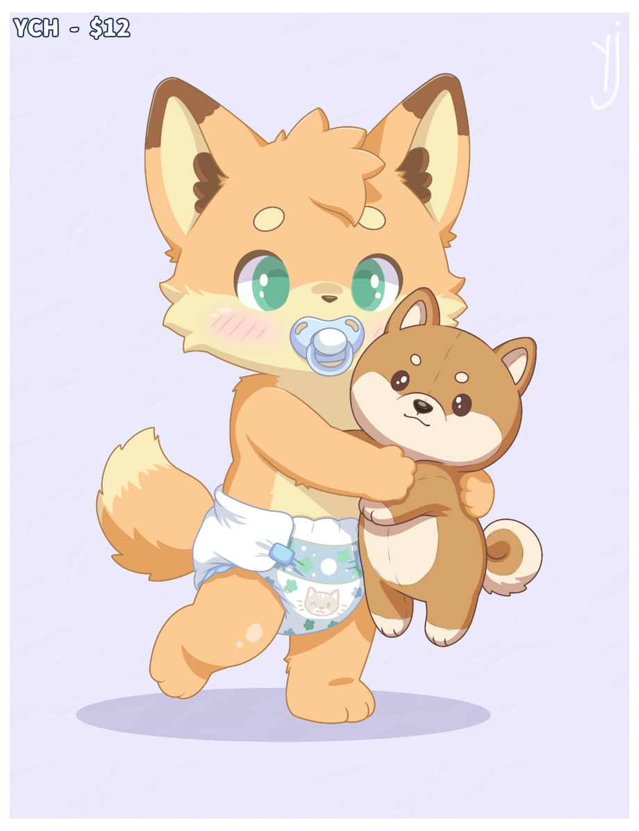 A new YCH for this month, with touches that you might like, such as hug your favorite plushie, as well as any specific diaper or pacifier design you might like, in addition to new ways of giving them the file, such as with a transparent background and with white outlines on the character like a sticker.
