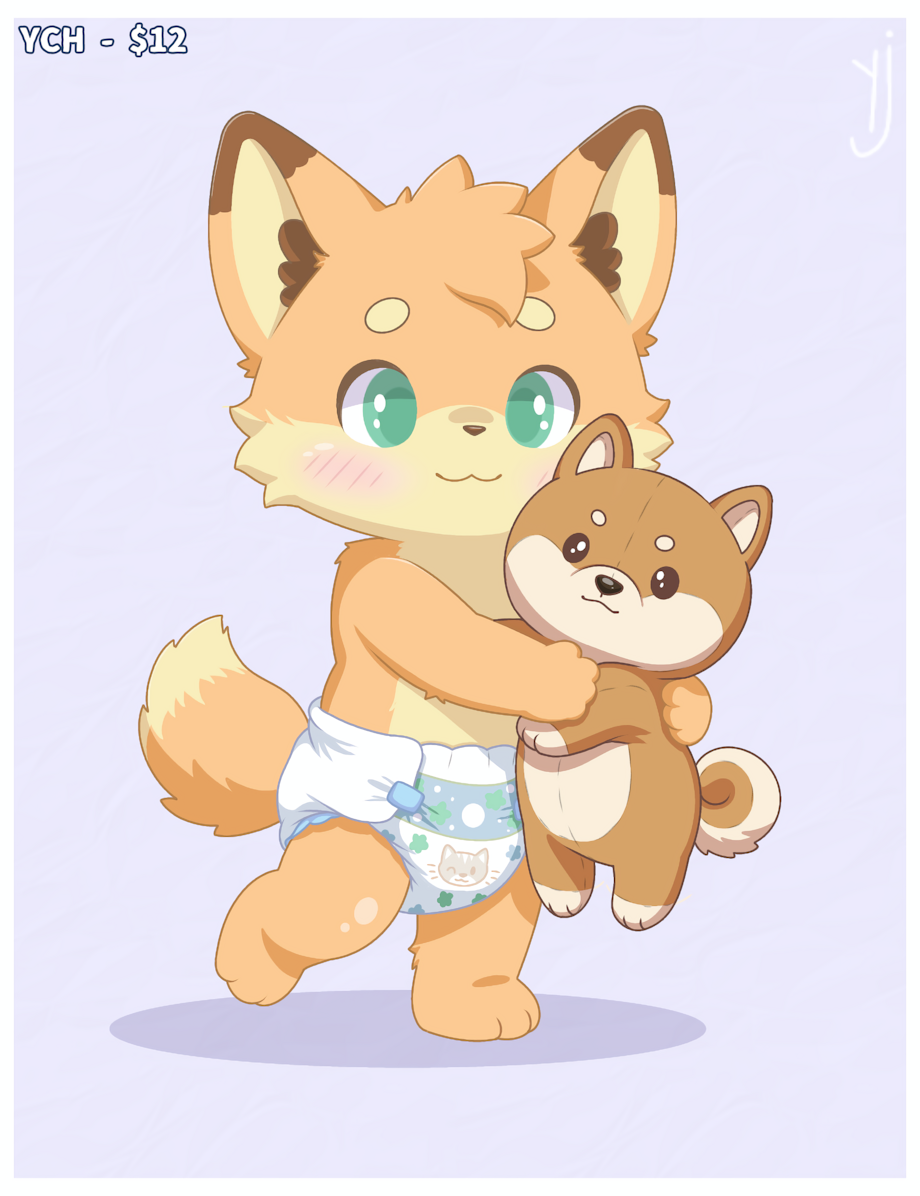 A new YCH for this month, with touches that you might like, such as hug your favorite plushie, as well as any specific diaper or pacifier design you might like, in addition to new ways of giving them the file, such as with a transparent background and with white outlines on the character like a sticker.