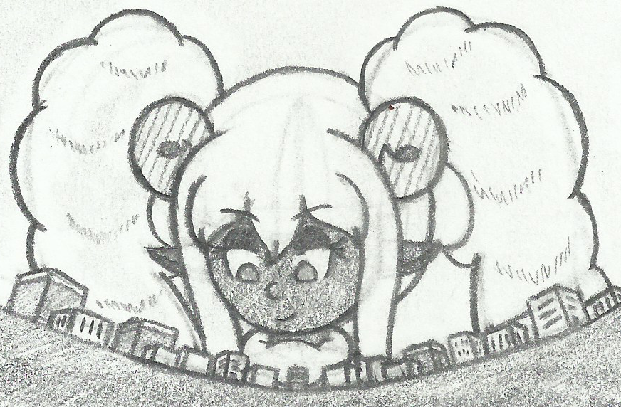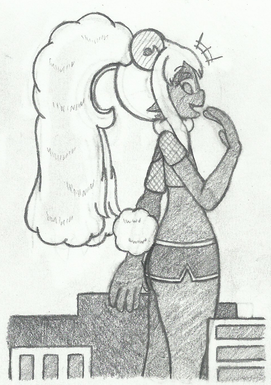 It's a little forced, admittedly, but I wanted to try setting up the fish-eye-like perspective I've seen in other size art. I think I'm starting to understand the benefits, but I need more space than I had on the page.