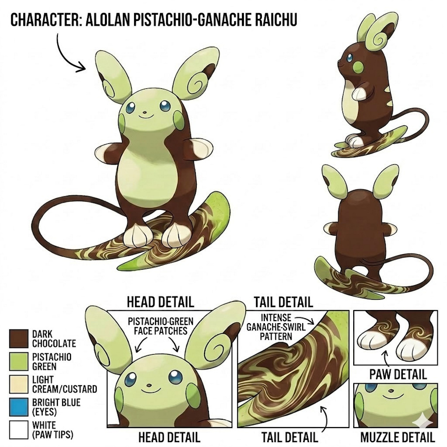 here a new oc i have create with the help of ai is name is pistachu is the the brother of tiramichu and reesechu