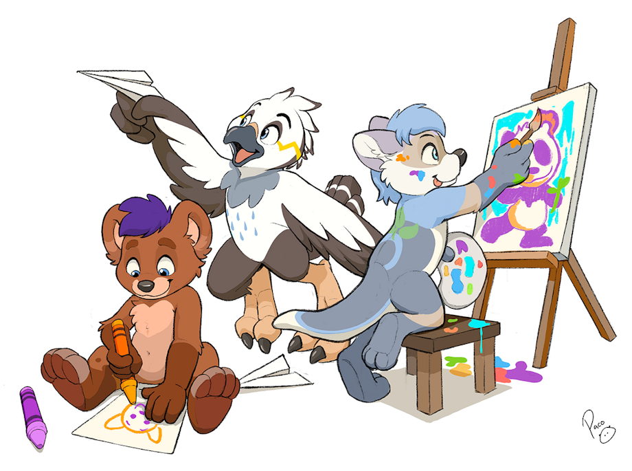 Geo (the bear), Storm (the osprey) and Sprout (the otter-wolf) enjoying a time of creativity, you may think some are more skilled than others but the truth is that everyone here is having a fun time equally and that's what matters.