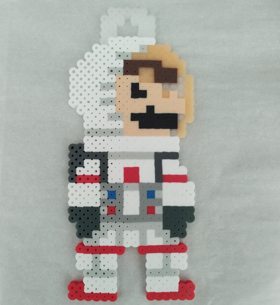 Perler of 8bit Astronaut Mario from Super Mario Odyssey