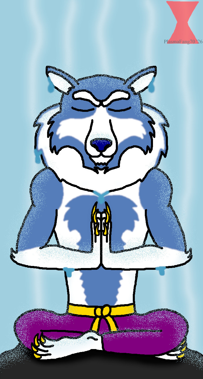 (PS. This is my time drawing him and if you're wondering, his tail is behind him, just slack as he's sitting calmly.)