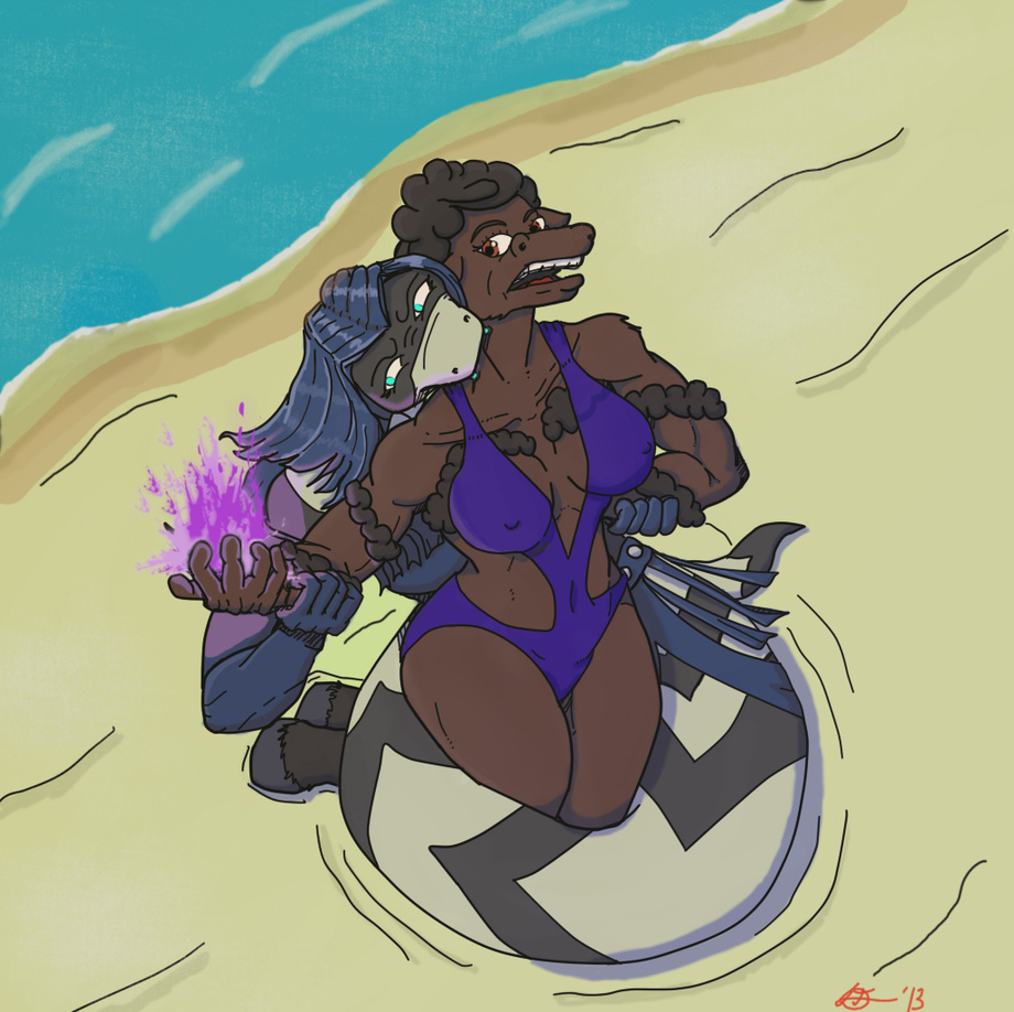 It is the chinese year of the snake and one of them got lucky on the beach. Drain is an energy vampire and she just got the hand over an overconfident sorceress. Ebony will have to hope that help coming soon because her mana is disappearing really fast.
