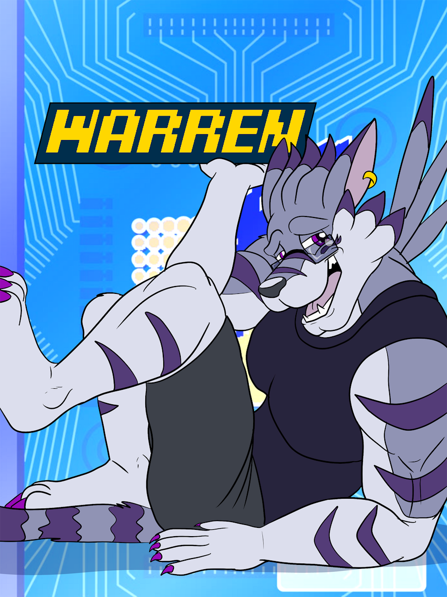 Here is a conbadge I made for myself featuring Warren who is learning how cramped a Conbadge's size can get XP