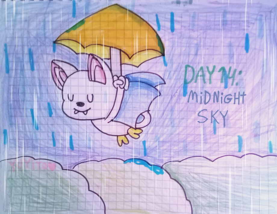 para este día decidí hacer a un Korbat surcando los cielos nocturnos durante una lluvia (por si se lo están preguntando he estado teniendo el paraguas con su cola) ☔🦇.